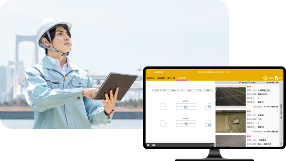 タブレットを用いて橋梁や道路構造物などインフラ施設点検業務全体の効率化・省力化を支援